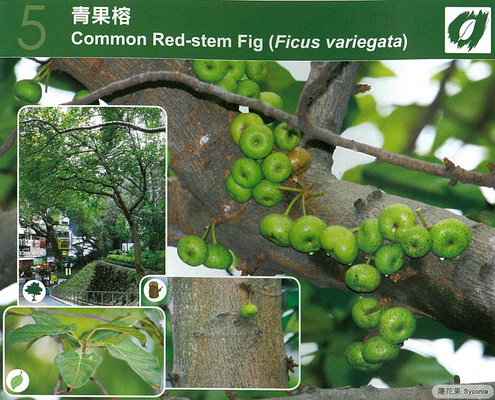 趣味資料: .果實青翠帶光澤,故被命名為『青果榕』 .果實數量多,能吸引不少動物進食,如雀鳥、松鼠等。